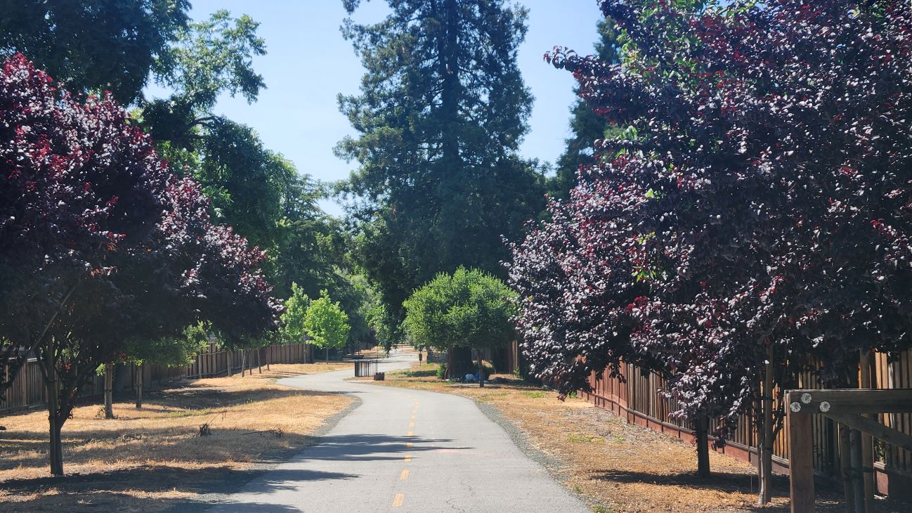 The western portion of the Three Creeks Trail was completed and open to the public in August 2018. It is a class 1 paved trail from Lonus Street, connecting to the Los Gatos Creek Trail, to Falcon Place. It continues to the Guadalupe River via an extra wide sidewalk trail on Falcon Place.